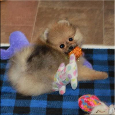 | Puppy photos are taken between four and five months of age. Many breeders sell puppies at eight weeks of age but I prefer to give more time for development. My puppies have excellent temperaments, partially due to the extra time and care from their mothers. This natural weaning process allows my puppies to learn so much from their moms including the beginning stage of house training. We continue the training until the puppies go to the new home. We also train them to be good with grooming and tooth brushing. The price of each puppy is based on overall quality according to the Pomeranian standard of the American Kennel Club. Over the past 30 years, the focus in my breeding program has always been health and personality first, then beauty. Companion simply means that the puppy will not be a show or breeding dog. Their one job is to love their family. If looking for a puppy to show, please email me. | ||