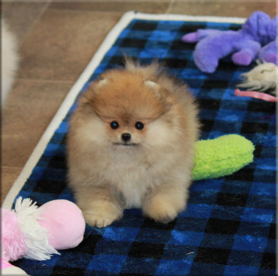 Puppy photos are taken between four and five months of age. Many breeders sell puppies at eight weeks of age but I prefer to give more time for development. My puppies have excellent temperaments, partially due to the extra time and care from their mothers. This natural weaning process allows my puppies to learn so much from their moms including the beginning stage of house training. We continue the training until the puppies go to the new home. We also train them to be good with grooming and tooth brushing. The price of each puppy is based on overall quality according to the Pomeranian standard of the American Kennel Club. Over the past 30 years, the focus in my breeding program has always been health and personality first, then beauty. Companion simply means that the puppy will not be a show or breeding dog. Their one job is to love their family. If looking for a puppy to show, please email me. | ||
